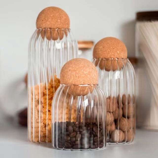ストライプ缶コルク栓ガラス貯蔵缶コーヒー豆貯蔵缶家庭用ドライフルーツ雑穀茶葉香料収納