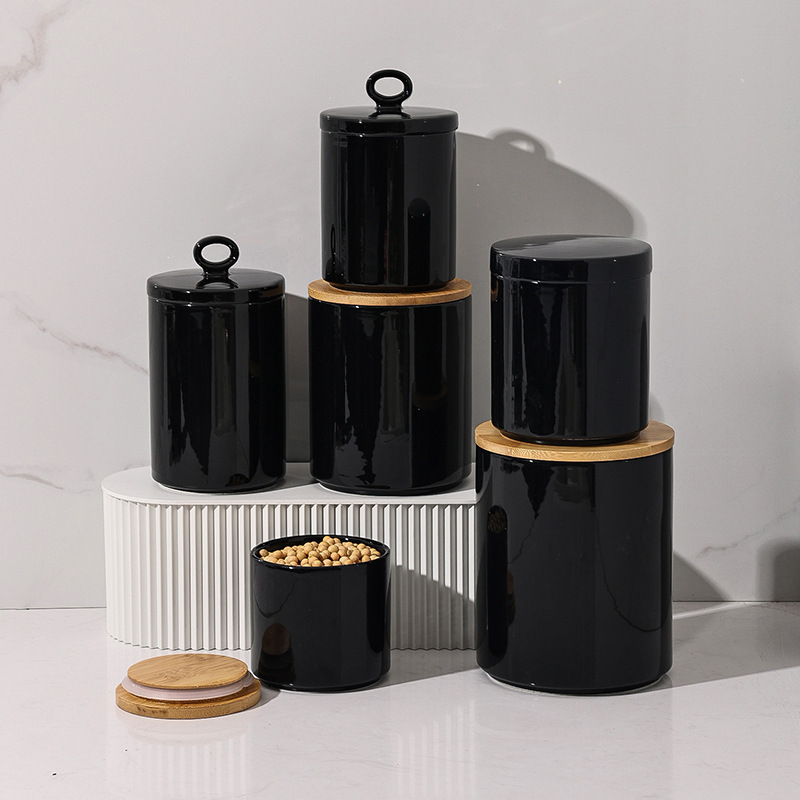北欧シンプルなセラミック貯蔵タンク木蓋付き密封缶キッチン用品キャンディーコーヒー茶葉雑穀密封缶