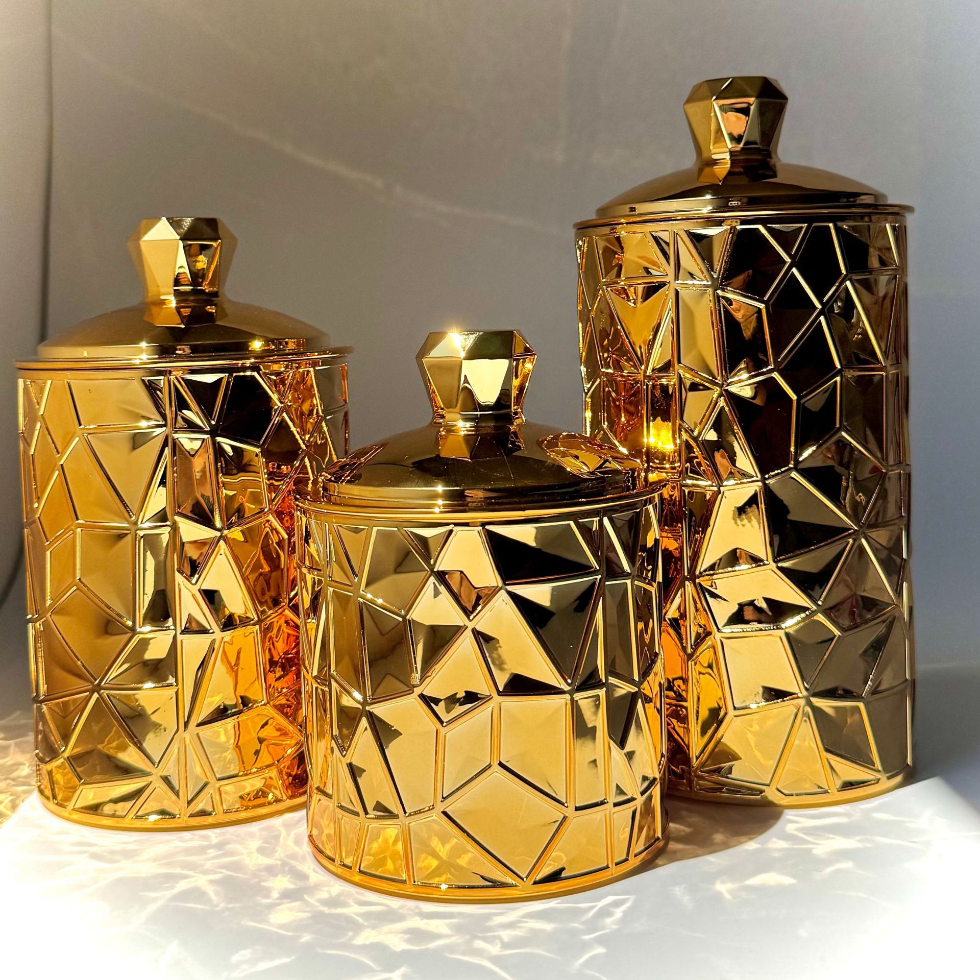 輝くダイヤモンド模様ガラスキャンディー缶円柱形ジャーヴィス水晶砂糖缶香薫ろうそくアクセサリー収納缶