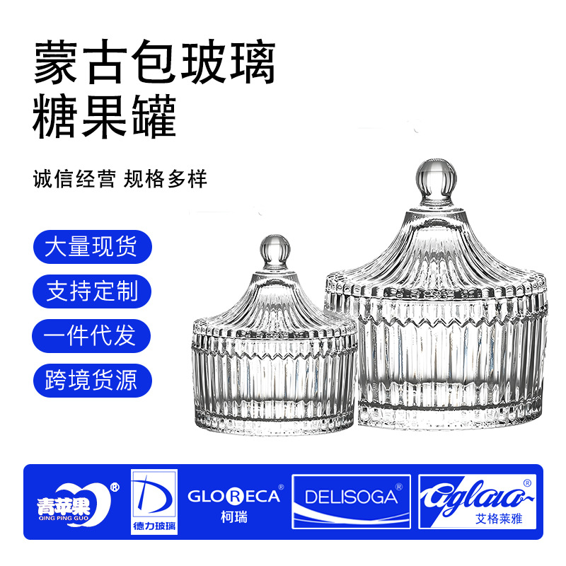 モンゴルパックガラスキャンディージャークリスタル消磁ジャー肥厚インスタイル砂糖瓶蓋付きホームウェディングギフト装飾品