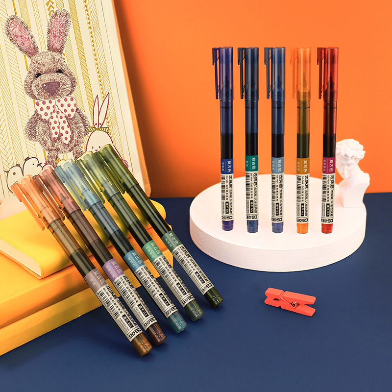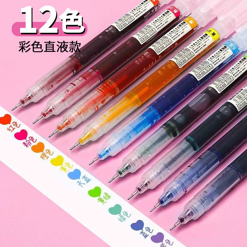 12カラー直液式ボールペン大容量速乾中性ペン学生試験ブラシ問題ペン0.5mm針管ペン