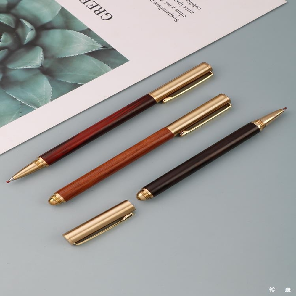 ホット販売ローズウッド木製署名ペンサンダルウッド署名ペン真鍮ゲルペン無垢材ハイエンドビジネス黒ボールペン