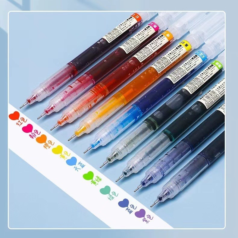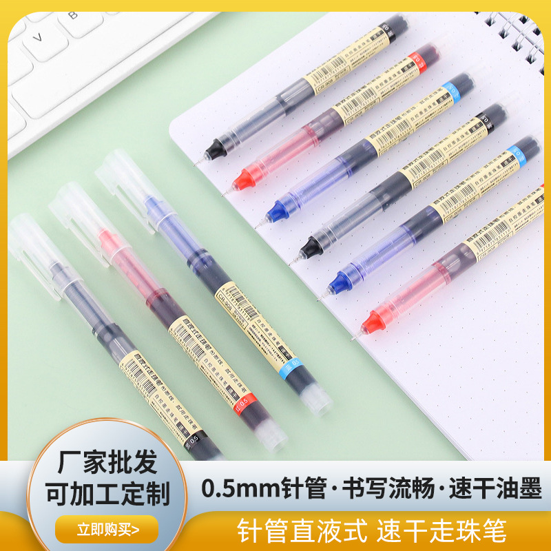 カラー直液式速乾ボールペン0.5針管大容量直液式中性ペン学生用水ペン卸売り