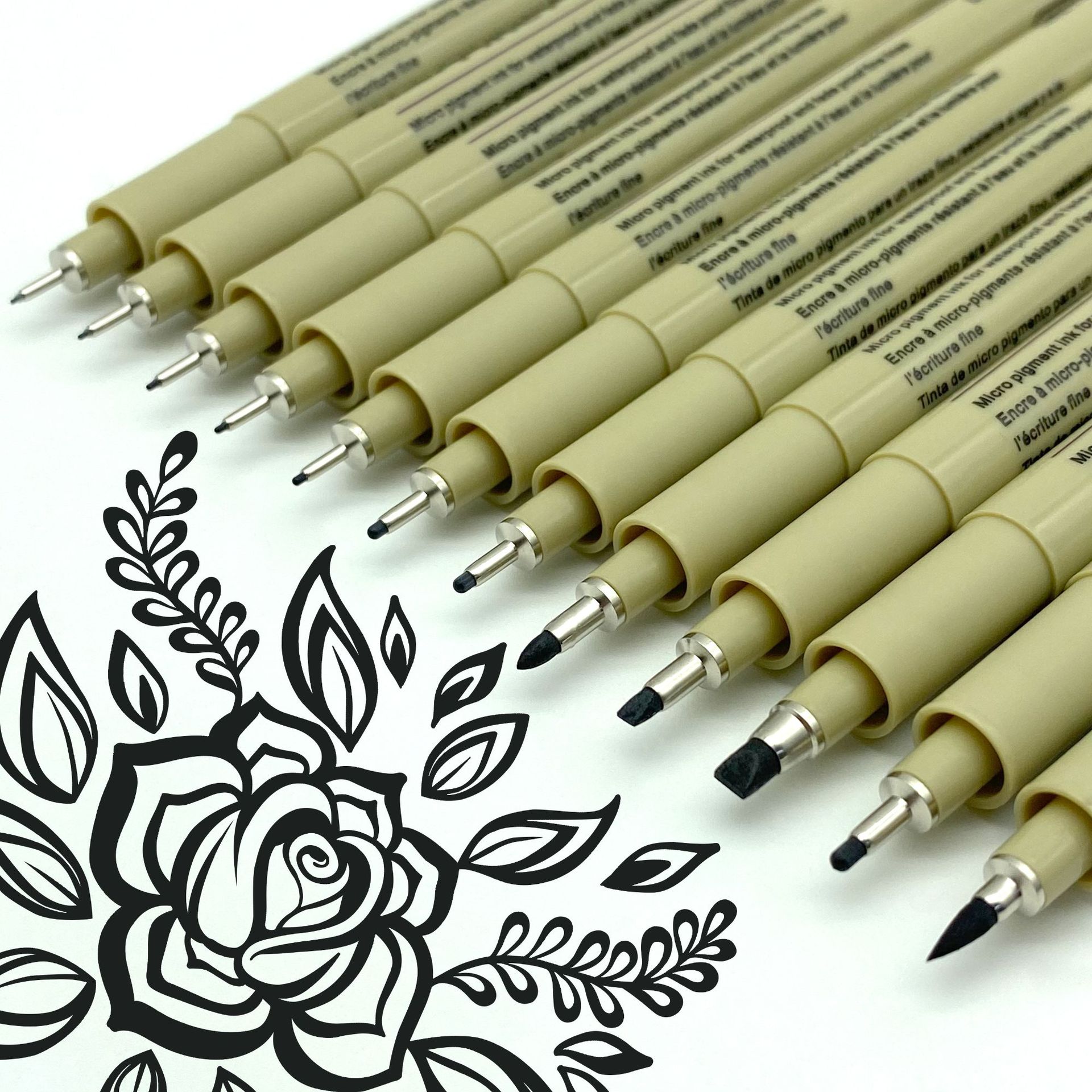カスタマイズされた 12 仕様ニードルアート描画ペンセットアートビルディングブラックフックラインサインペン