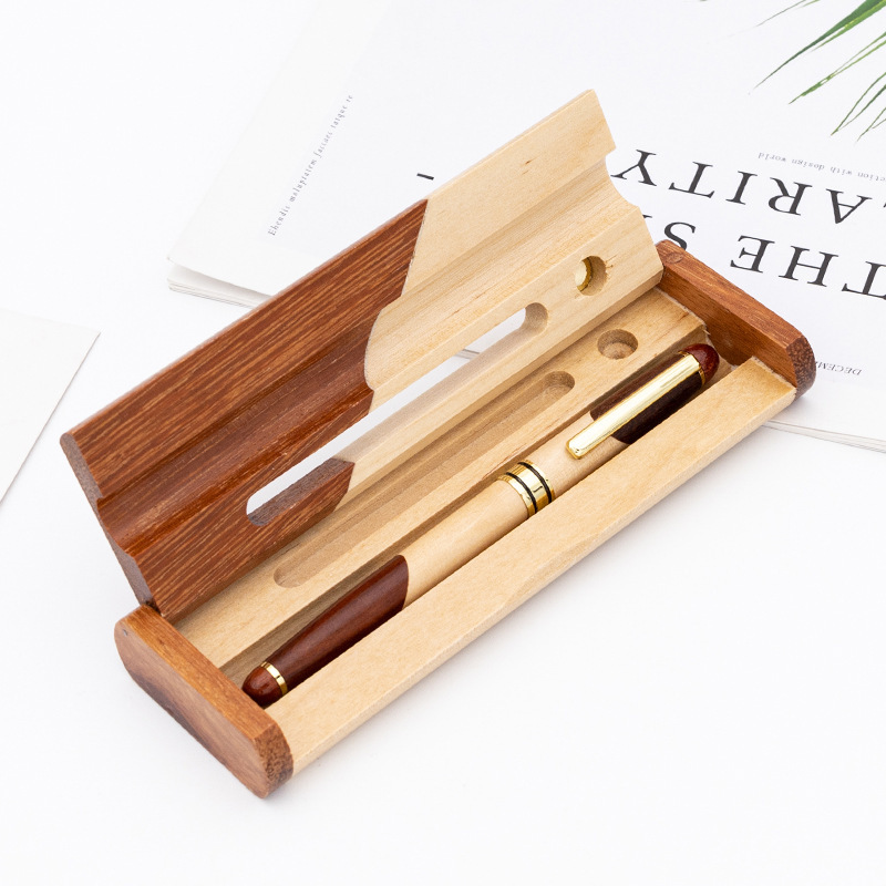 実木の色合わせの宝珠筆ビジネスプレゼントボールペン対筆セットのレトロなサインペンはロゴを印刷することができます。
