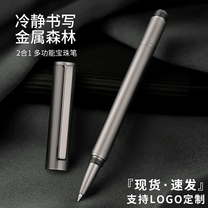 銃灰色サインペン2合1多機能宝珠筆永生墨頭サインペン事務用ペンカスタマイズ可能ロゴ