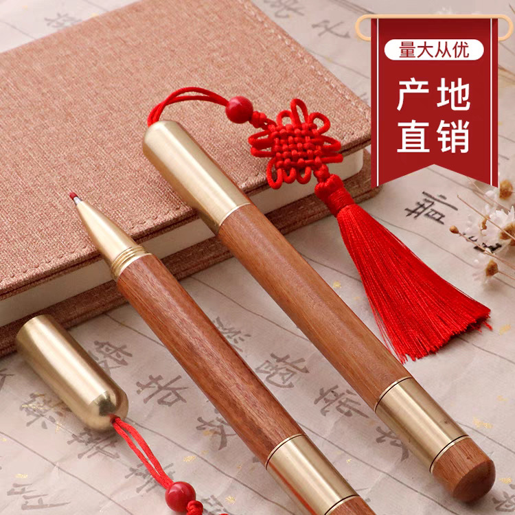 メーカー卸売り復古真鍮檀木中国結ビジネスサイン中性筆文創ギフトペン彫刻ロゴ