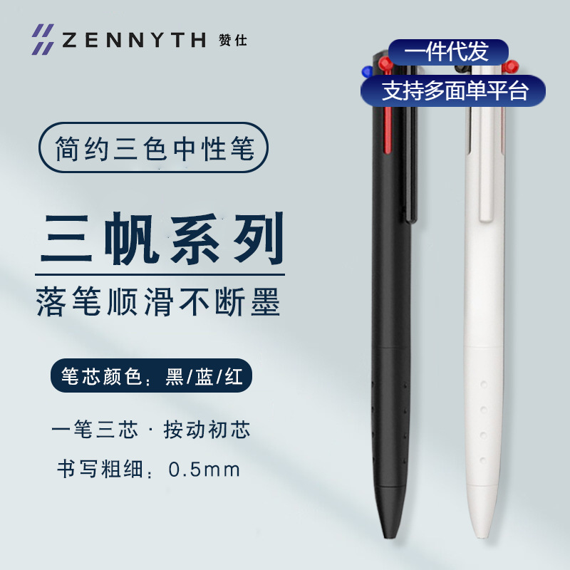 賛仕三帆三色ペンは中性ペンの三角ペンを押して学生のビジネスオフィスの多機能ペンをカスタマイズできます。