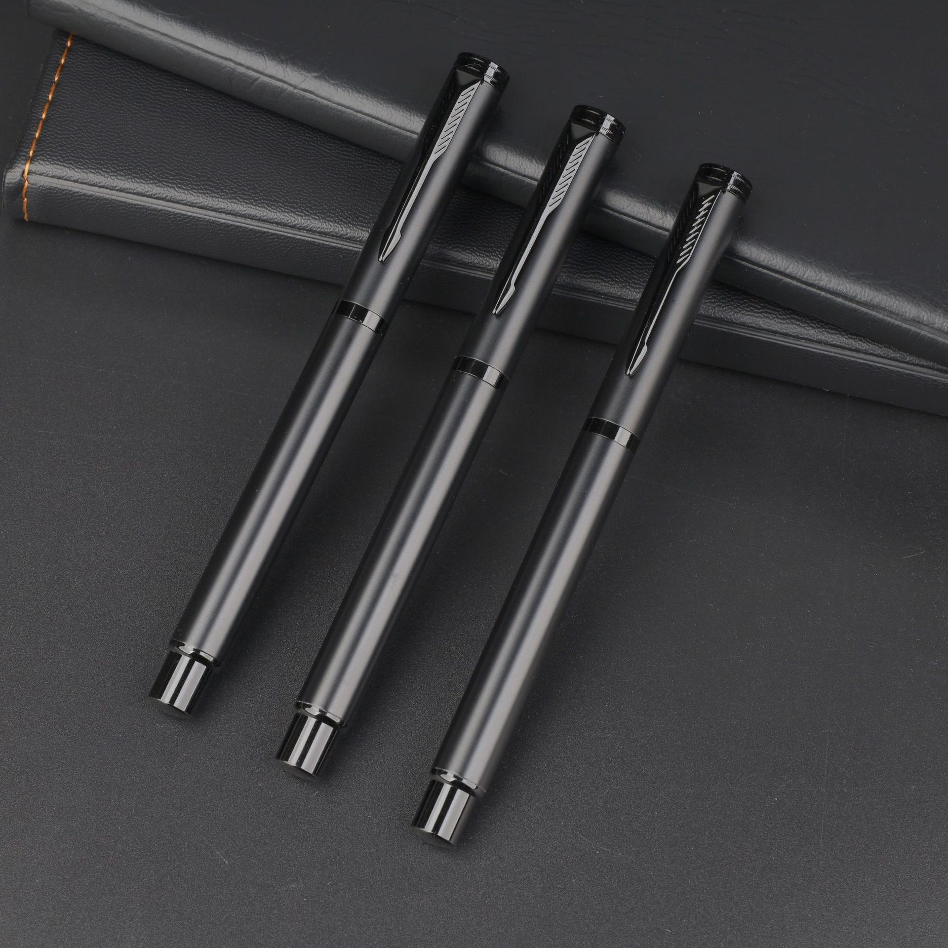 サインペン、ミニマリストピュアブラックビジネスオフィスボールペン、ハイエンドつや消しボールペン、箱入りカスタムロゴ