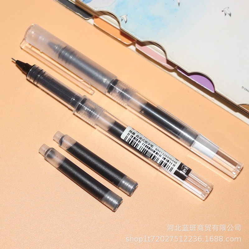 直液式の弾丸の針管の頭のボールペンはインクを吸い取ってインクの袋の両用の黒色の中性の0.5学生の正姿のペンを交換することができます。