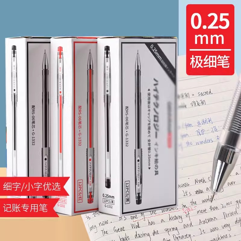 0.25mmペン黒極細中性ペン芯黒ペン細頭紅ペン財務ペン会計記帳専用ペン