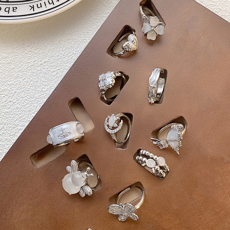 新しい春の色の甘いクールな色のジルコニウムの月光石の開口指輪の女性のシンプルなファッションの小さい大衆は白い気質のデザイン感の指輪を現します。