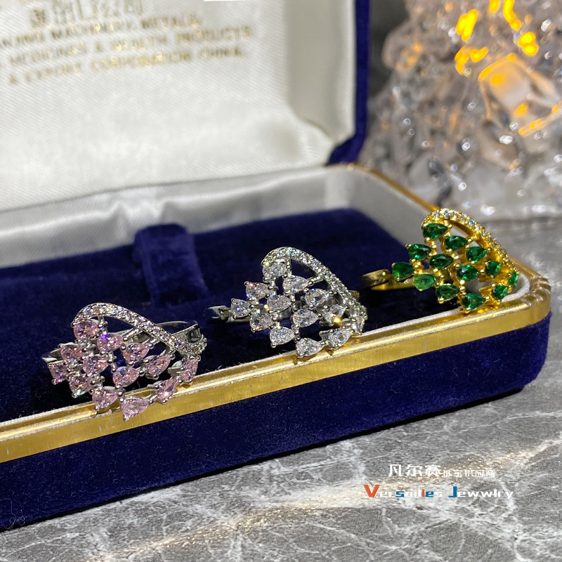 Versa海藍愛ジルコン指輪女性甘クールギャル小衆デザイン高級感潮クール開口食指戒