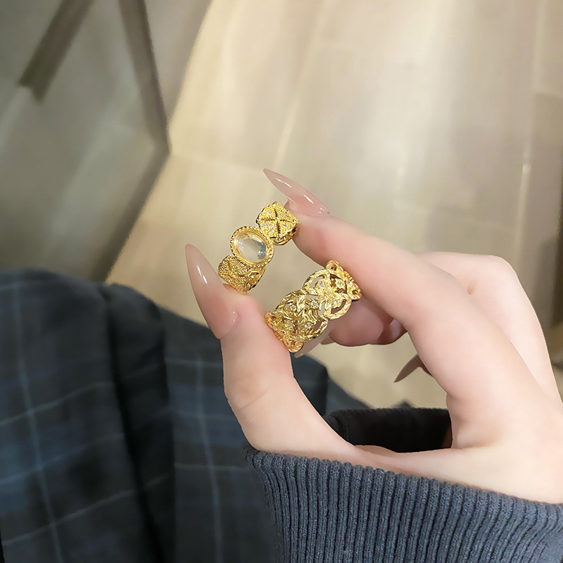 軽くて豪華な大衆の復古的な金色の広版のリボンの指輪の中古の宮廷風の透かし彫りのデザイン感の新型の氷透の指輪