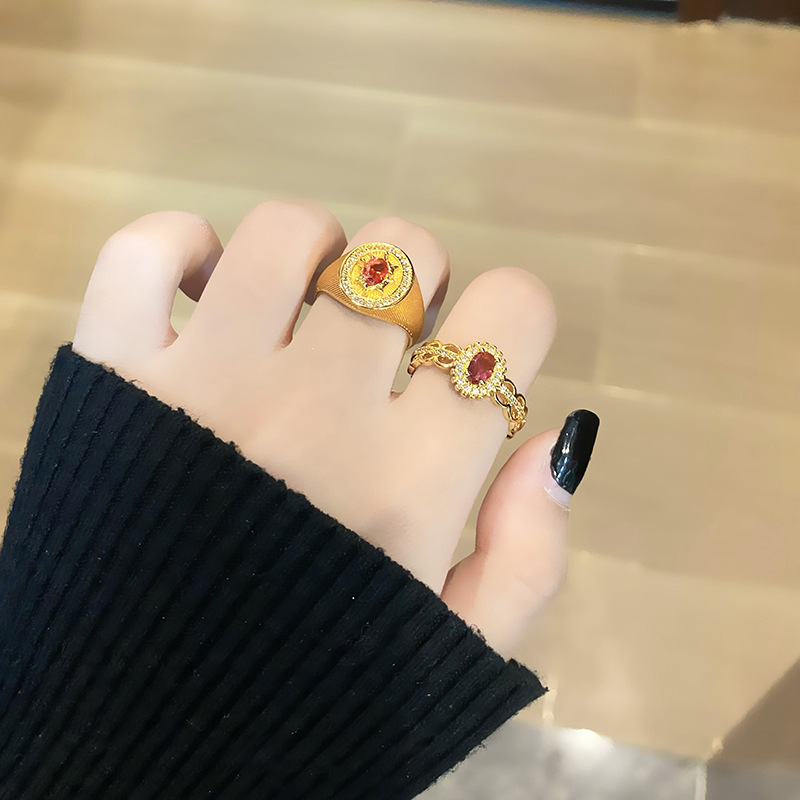 セイコー高級品フランス赤ドリル復古指輪女性モデル軽贅沢高級宮廷風食指戒口指環