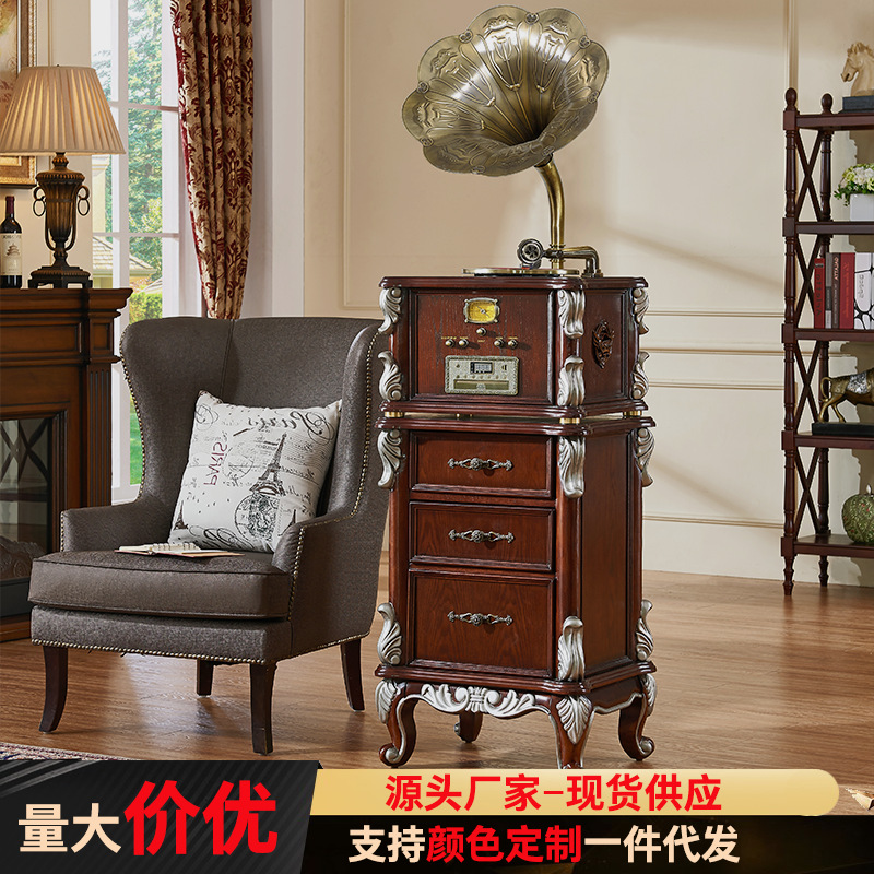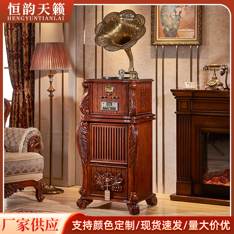 メーカー直供ヨーロッパ式実木彫刻ラッパレトロ蓄音機黒ゴムレコード機電気レコード機知能音響