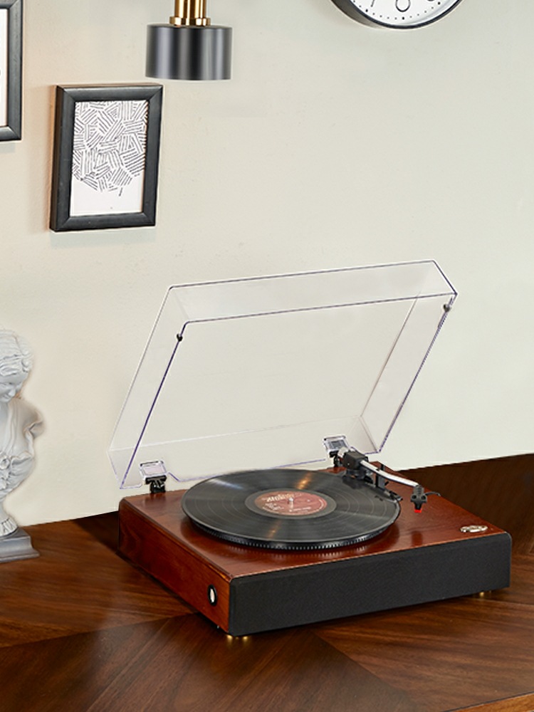 2025国境を越えた現物の黒ゴムレコード機のレトロな蓄音機のbluetoothスピーカーのリビングルームに防塵カバーを置く