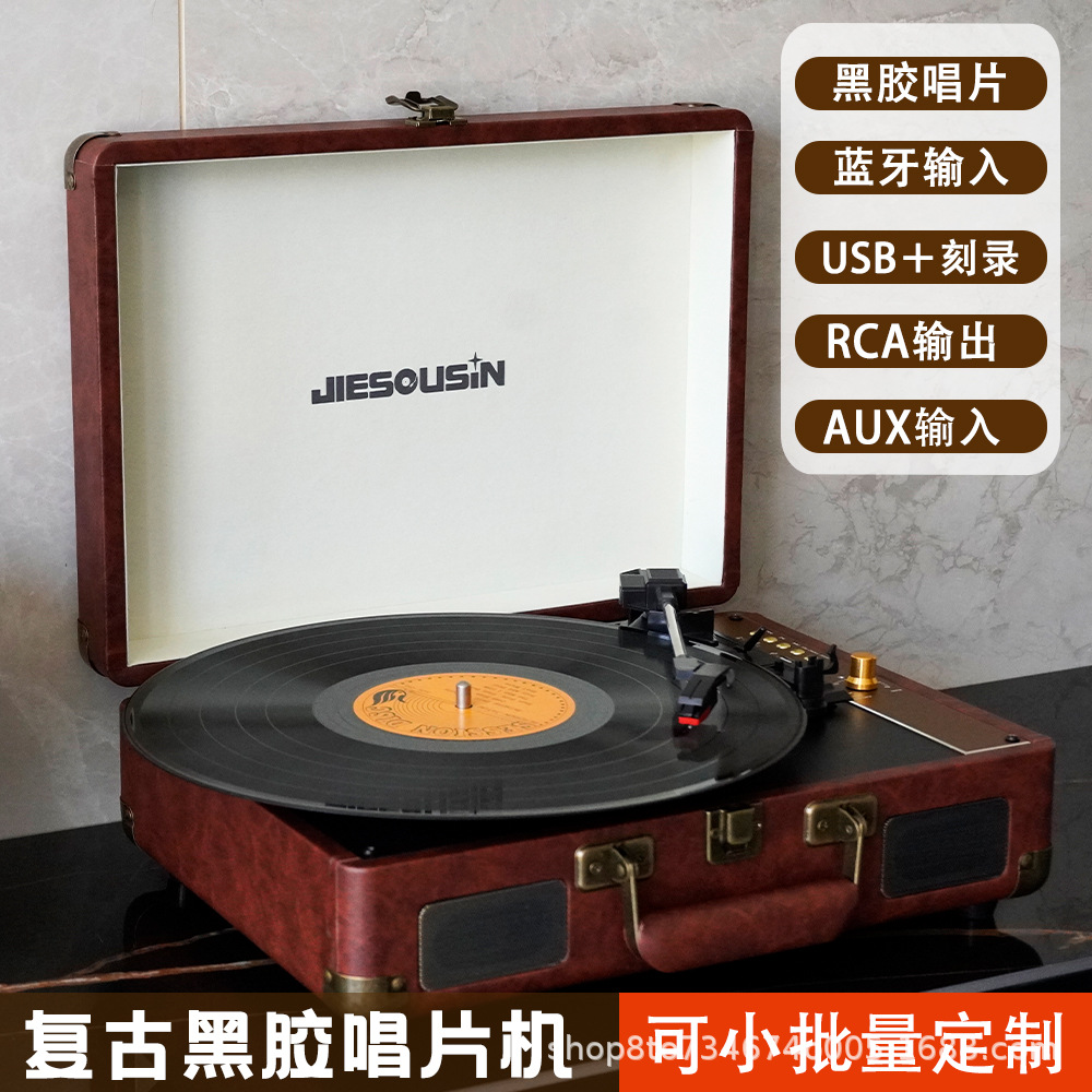 新型現代模造蓄音機携帯型黒ゴムレコード機多機能レコード機アマゾン爆型音響