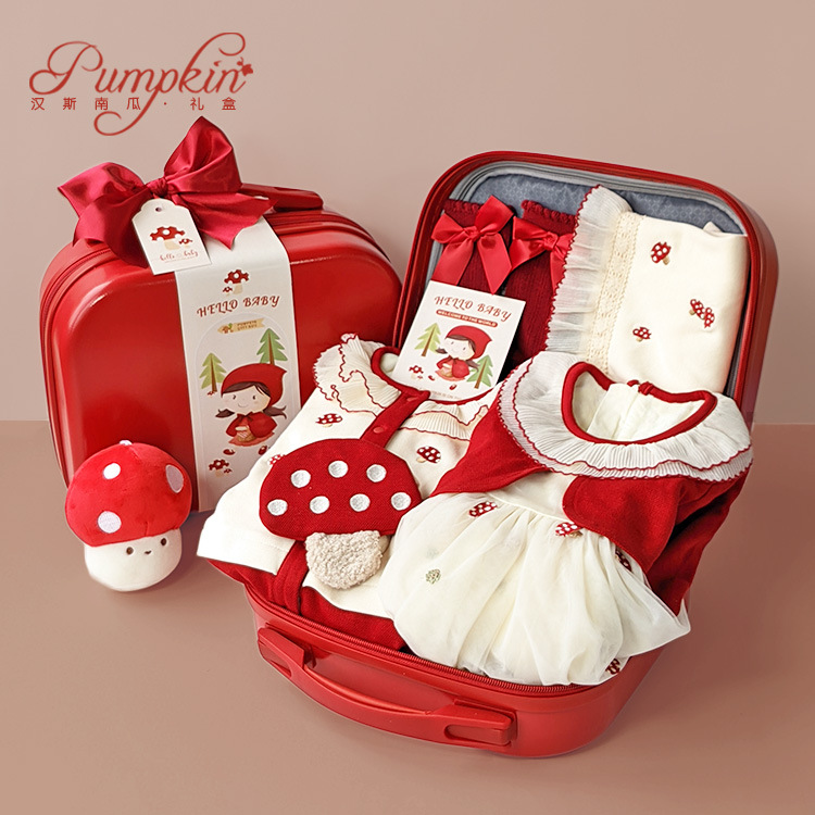赤ちゃんのギフトボックス赤いキノコの女の子の女の子の秋冬のスカートの新入生の誕生日はプレゼントをプレゼントします。