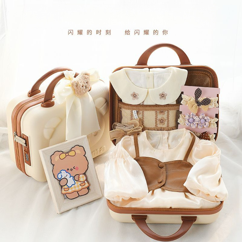 赤ちゃんの服のギフトボックスのスポーツスーツの秋の新入生の子供は顔を見てプレゼントします。