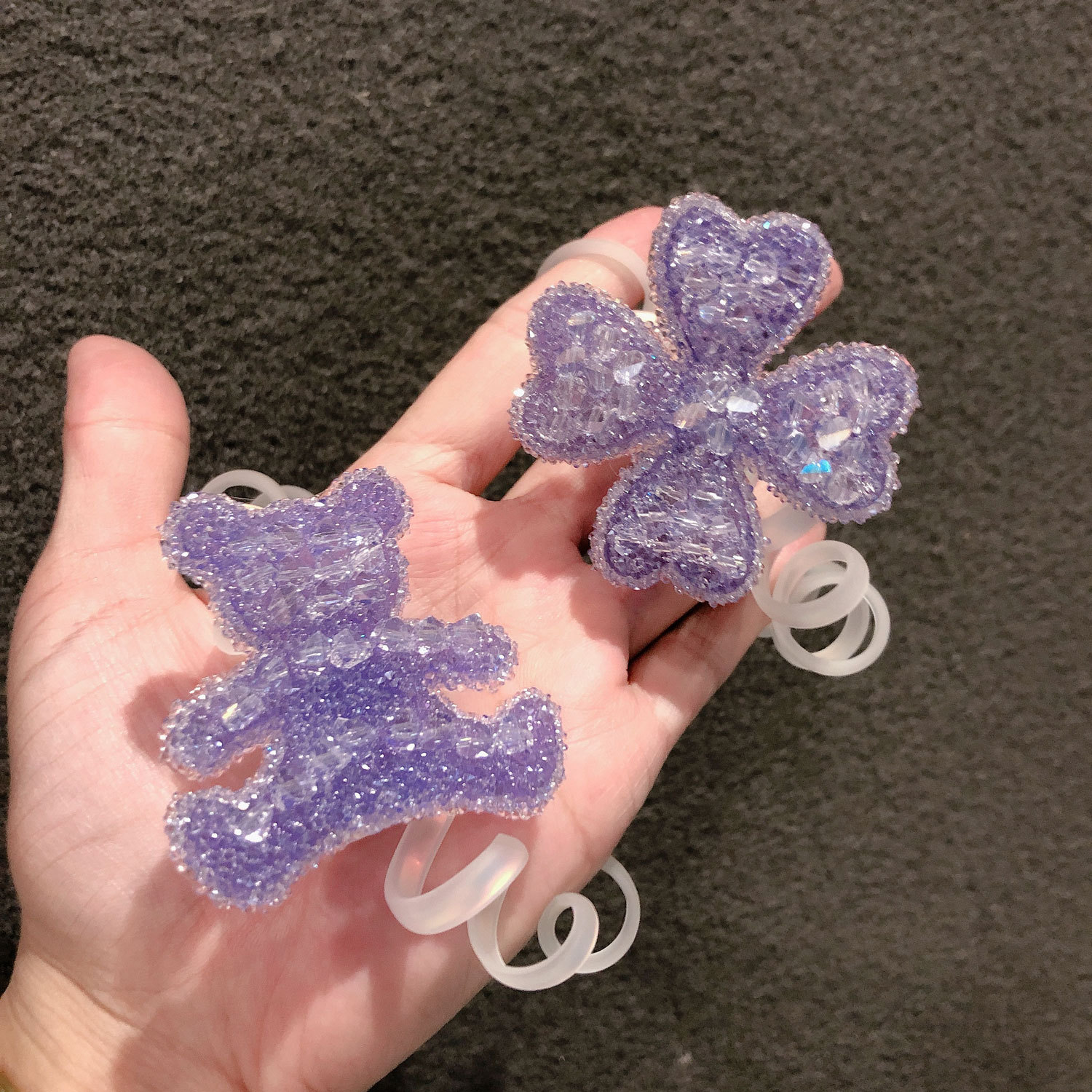 韓国の東大門の同じ熊の四つ葉のクローバーの簡単な電話線はダイヤモンドの水晶の髪の輪の団子の頭の皮の筋を入れます。