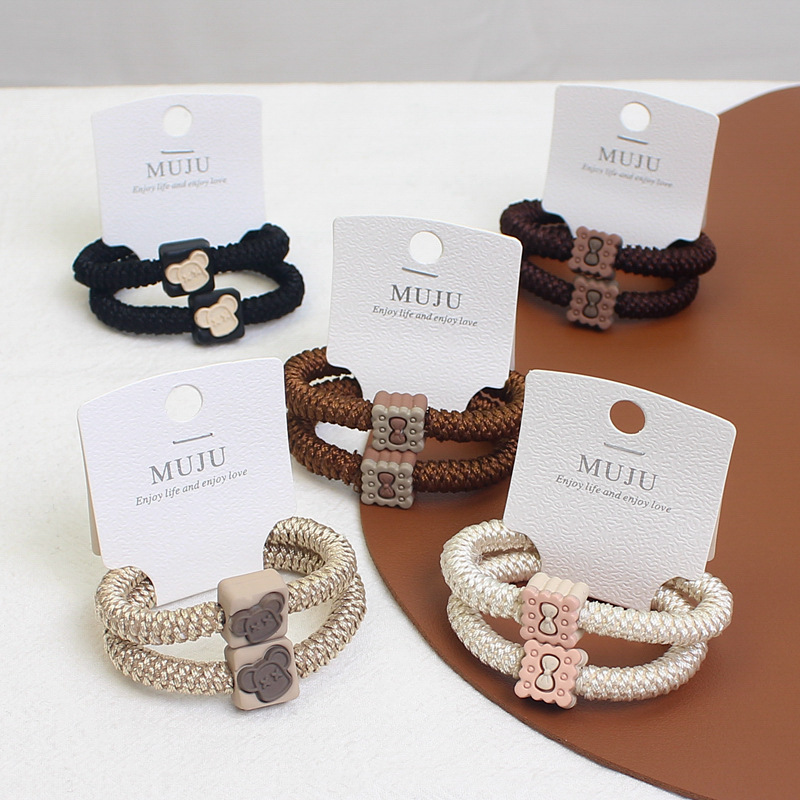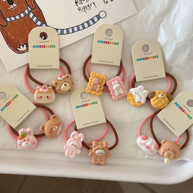 2本入りかわいいカレー系ビスケットウサギ熊髪紐少女心百合頭紐皮筋赤ちゃん髪飾り