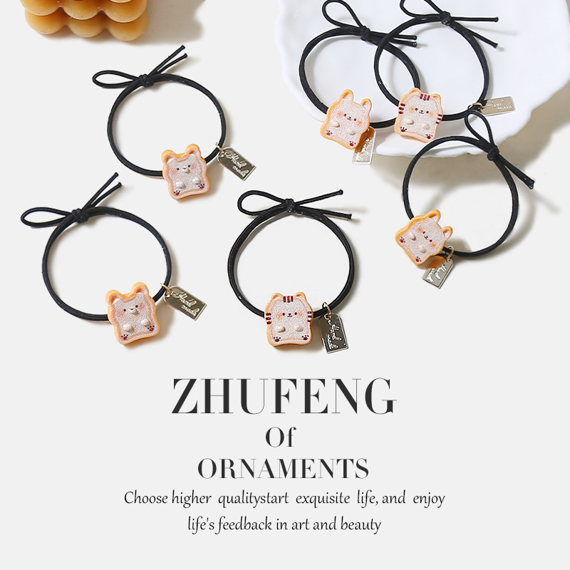 かわいいビスケットの子猫の熊の髪のひもの輪の少女の漫画の百合insの丈夫な髪の馬尾の皮の筋の頭飾り