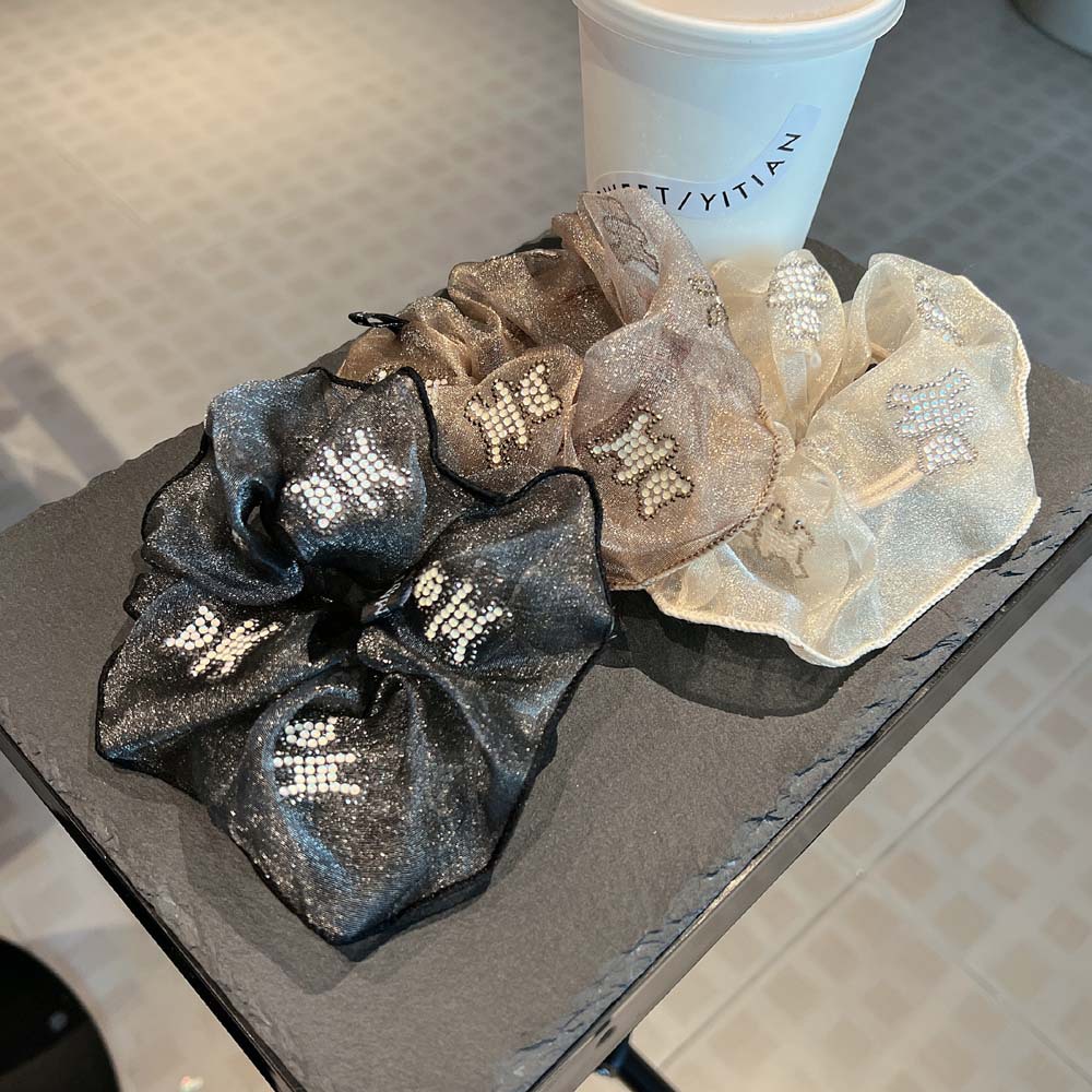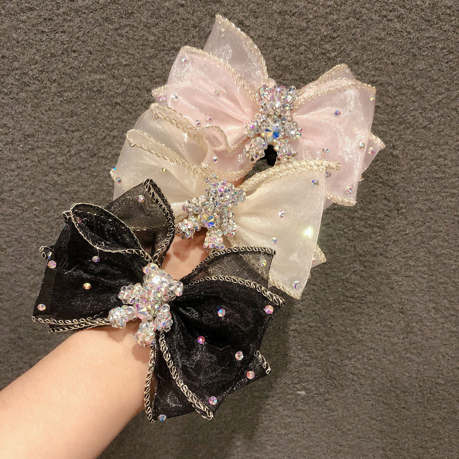 2021新商品の頭のアクセサリー韓国版ネット赤欧根紗蝶結びの頭縄超フラッシュドリルの熊の皮筋の髪ひもの女性