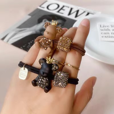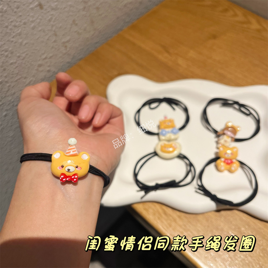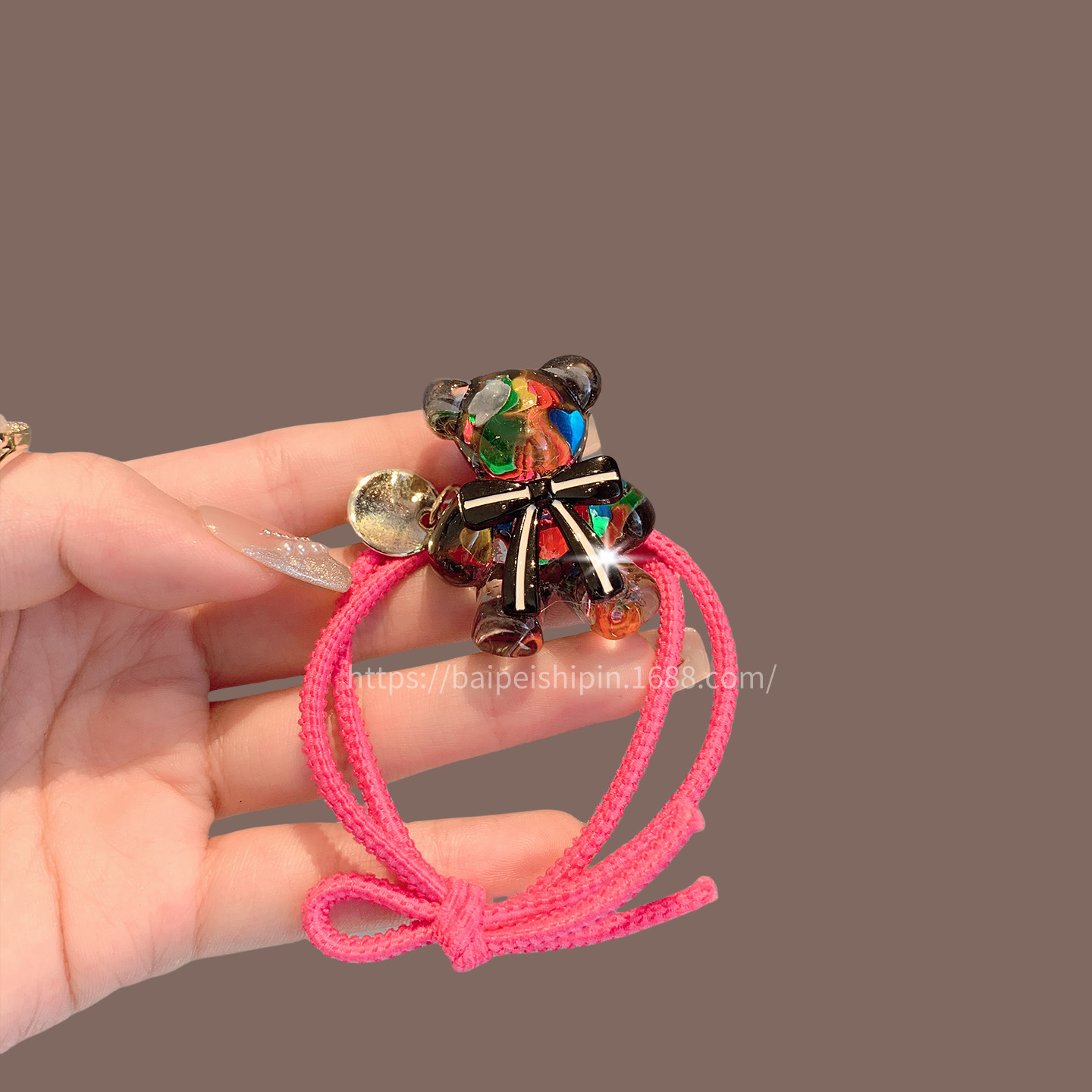 潮の彼氏のブレスレットins熊の髪ひもが可愛いネットの赤い髪ひもの髪輪の女性の皮筋の髪飾り