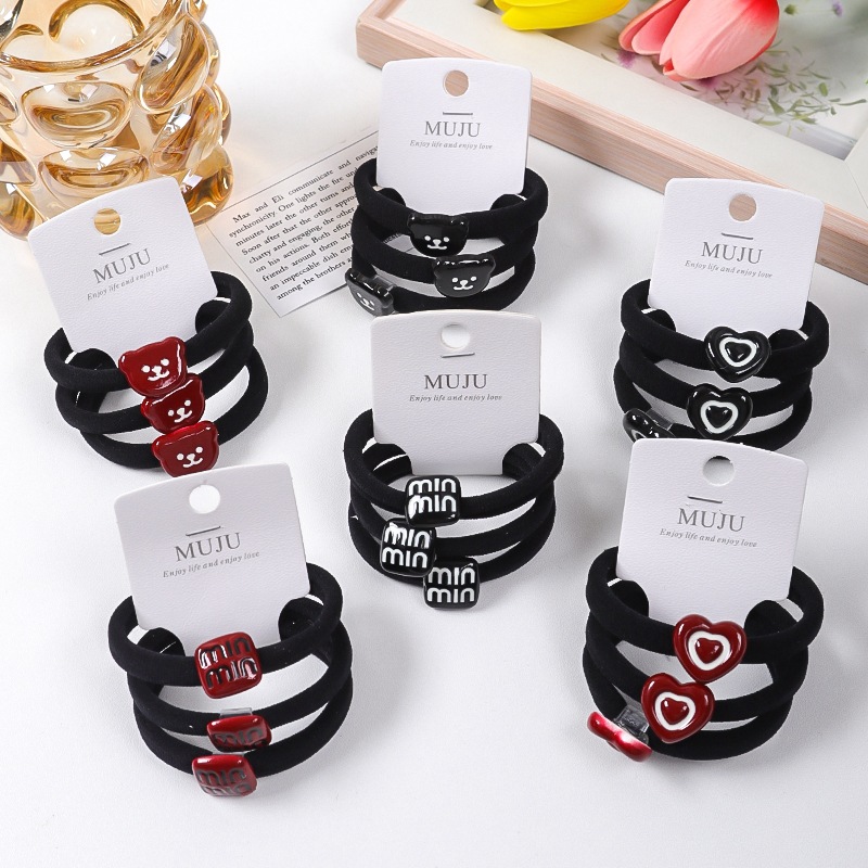 可爱いベアベア无伤ヘッドロープ高级感3本カード入り革筋高弾力シームレスシュシュ高ポニーテールヘアロープ