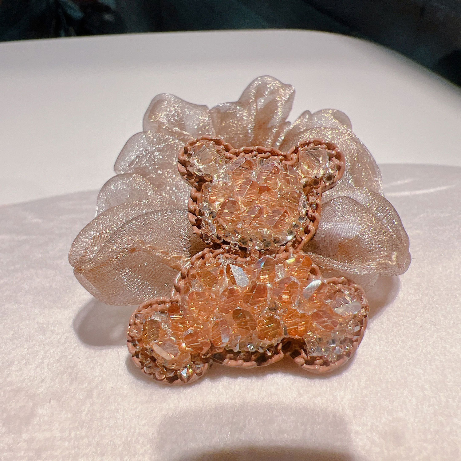 韓国の熊の超仙の欧根の紗の髪の輪のひもの気質の水晶はダイヤモンドのネットの赤い髪のひものゴムのアクセサリーを入れます。