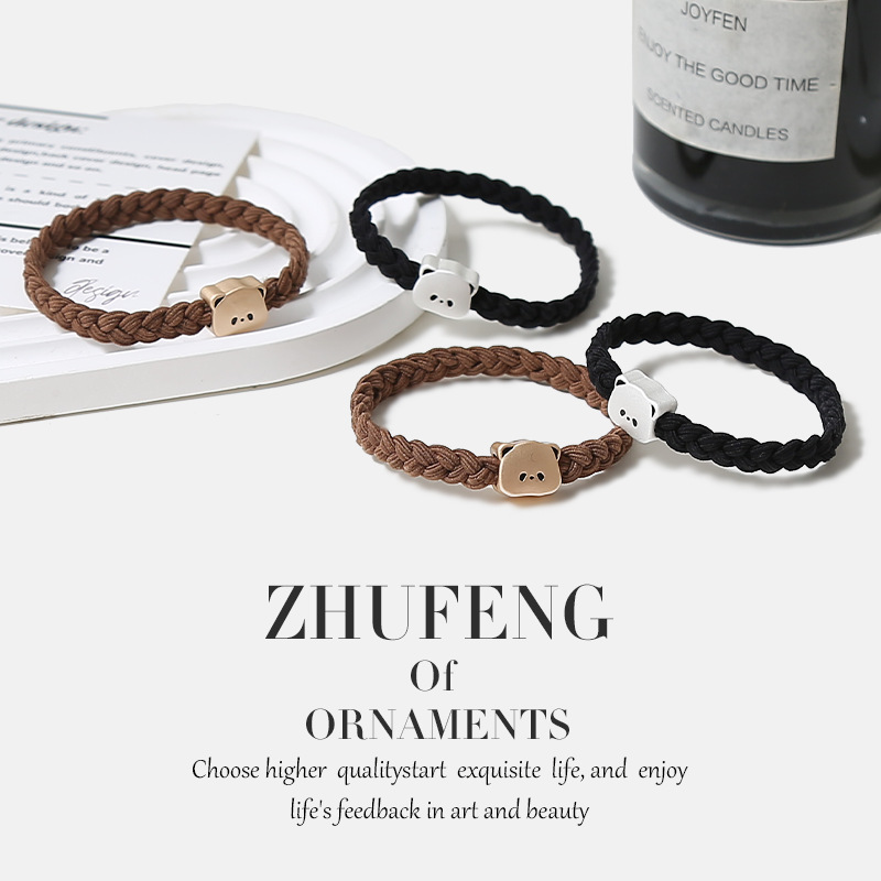 日本と韓国のシンプルなクマのヘアロープ、甘いガーリーな気質、高弾性編み込みゴムバンド、ポニーテール、多用途のヘアアクセサリー