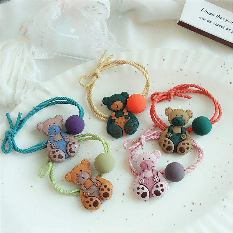 韓国ins甘いファッションキャンディー色ベアー愛髪ひもファッション百合皮筋束馬尾髪飾り