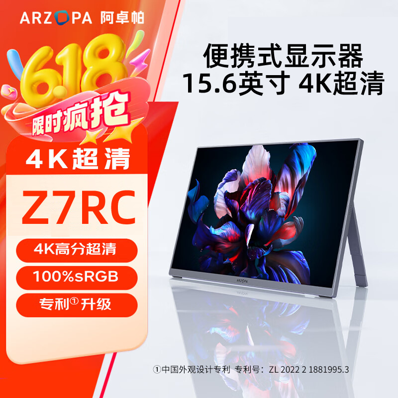ARZOPA ポータブル ディスプレイ 15.6 インチ 4K 超クリアな高色域携帯電話コンピュータ ノートブック オフィス拡張
