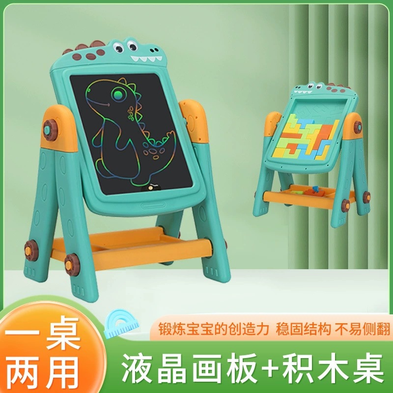新しい子供の多機能漫画液晶描画ボード絵画落書き両用木製収納テトリスおもちゃ