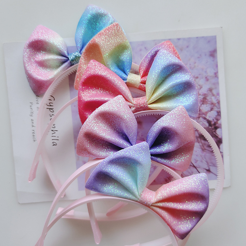 虹の明るい粉の立体の蝶結びのカチューシャの外国貿易のよく売れている子供のカチューシャの女の子の頭飾りの髪飾りのメーカーは直接販売します。