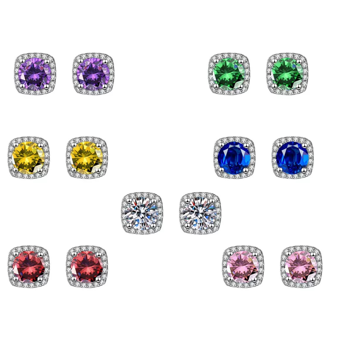 ヨーロッパとアメリカのクロスボーダーDouyinライブブロードキャストファッションライト高級カラーダイヤモンドスクエアバッグイヤリング女性用エレガントで多用途なスクエアイヤリング