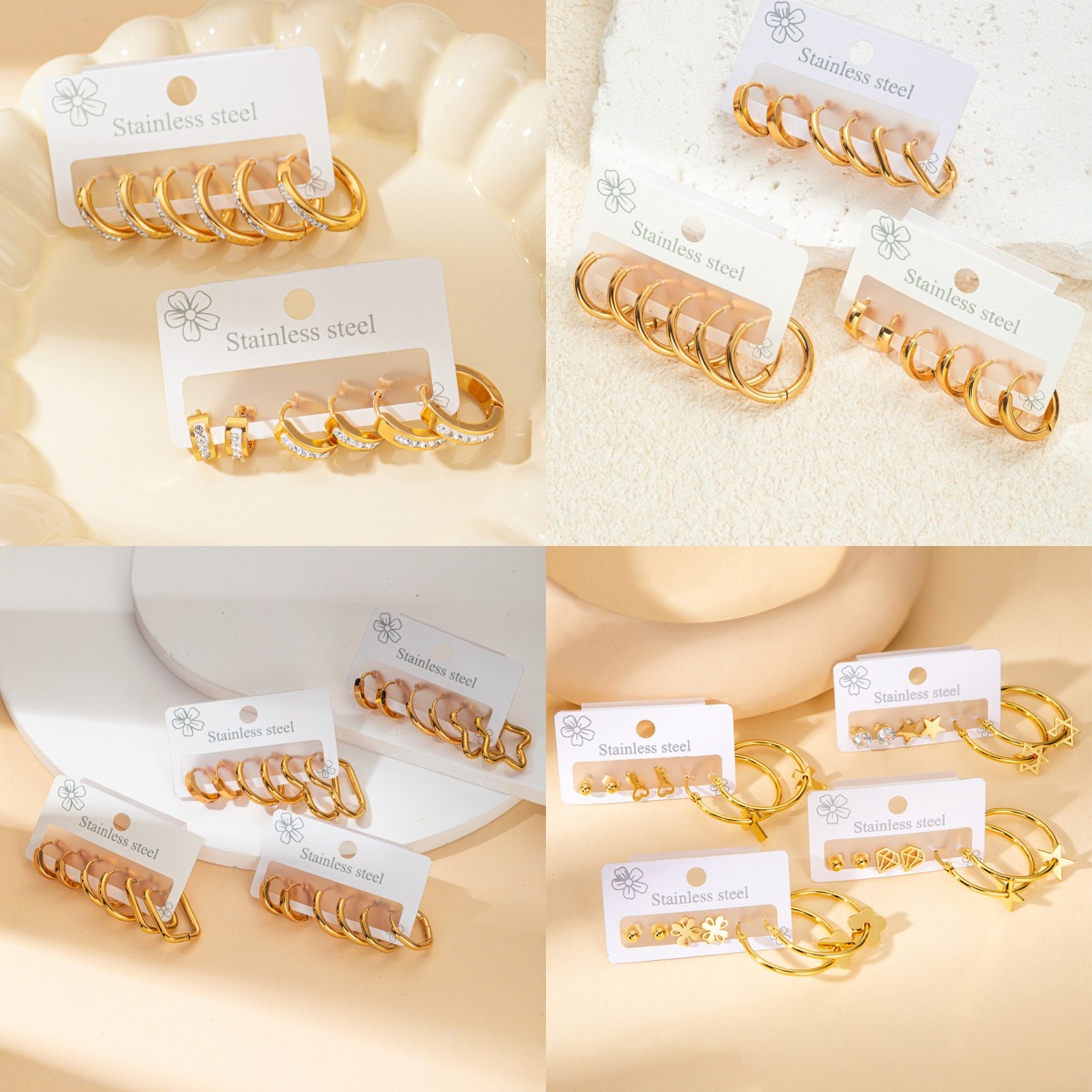 国境を越えたチタン鋼イヤリング幾何学セット女性の金色ファッション通勤は色を落とさない高級感ネット赤同型イヤリング