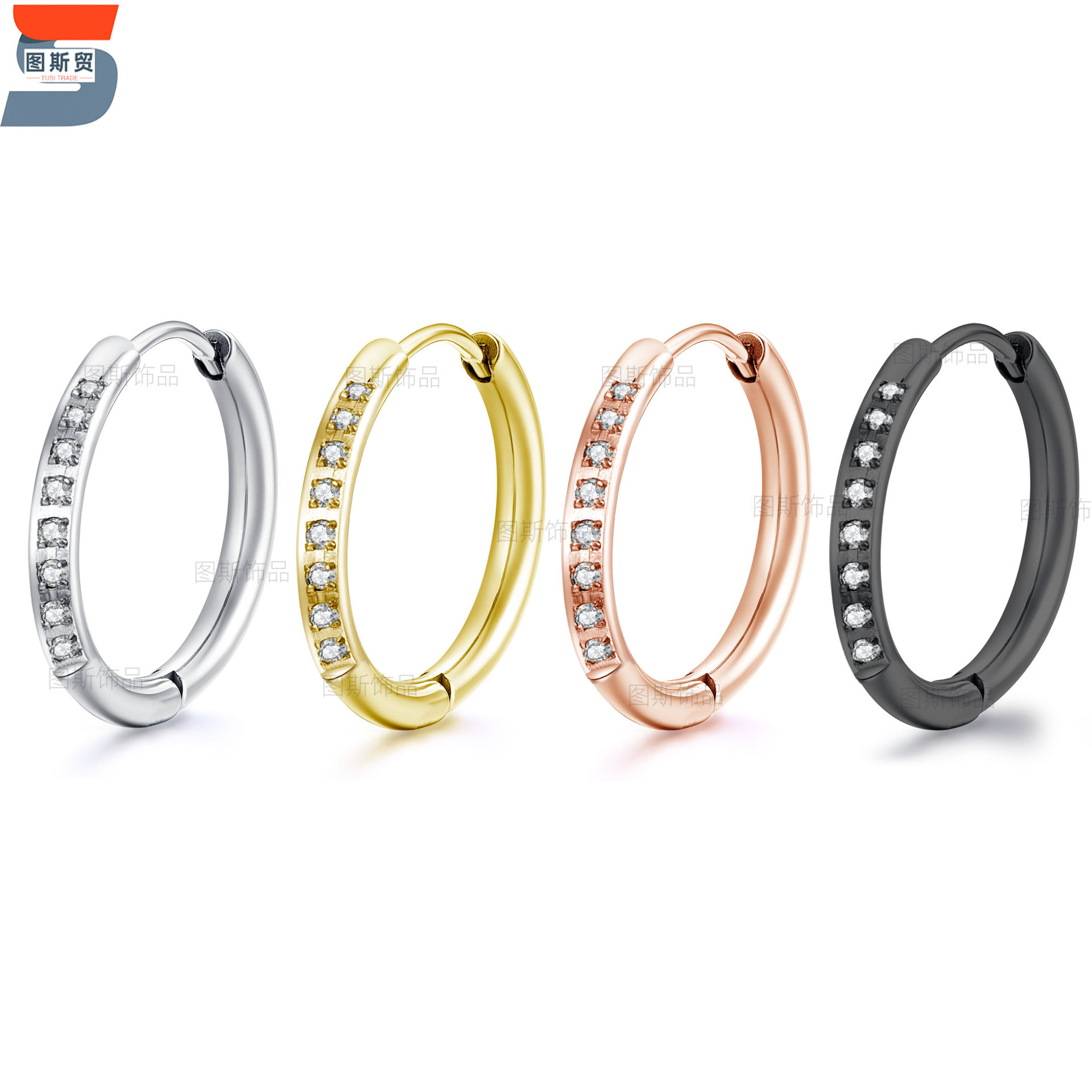 リング5リングイヤリングピアス男女チタン鋼韓国版イヤリングイヤリング円形耳ボタン耳輪コイルヒップホップスポット