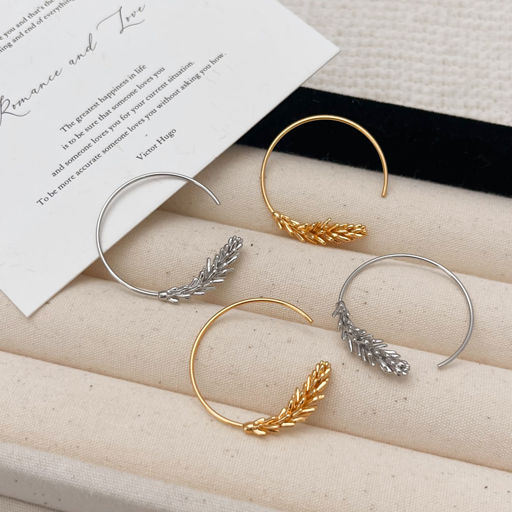 国境を越えた人気の新しいヨーロッパとアメリカのファッションサークル小麦穂イヤリングフェミニンニッチ電気メッキリアルゴールドイヤリング