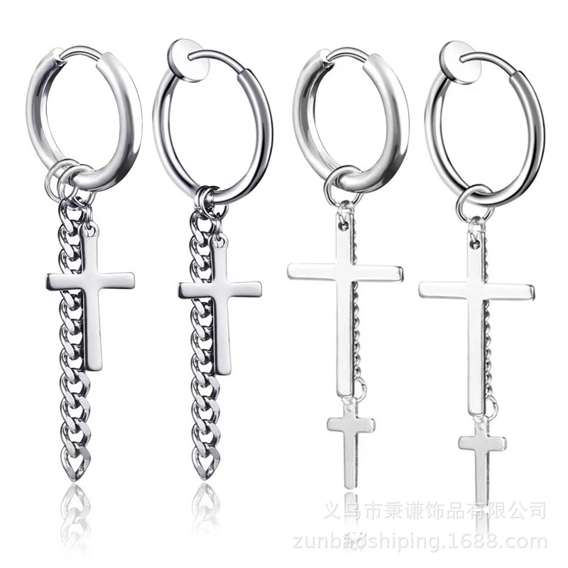 チタン鋼のイヤリングはクロスの耳輪の男性のピアスを吊るします。