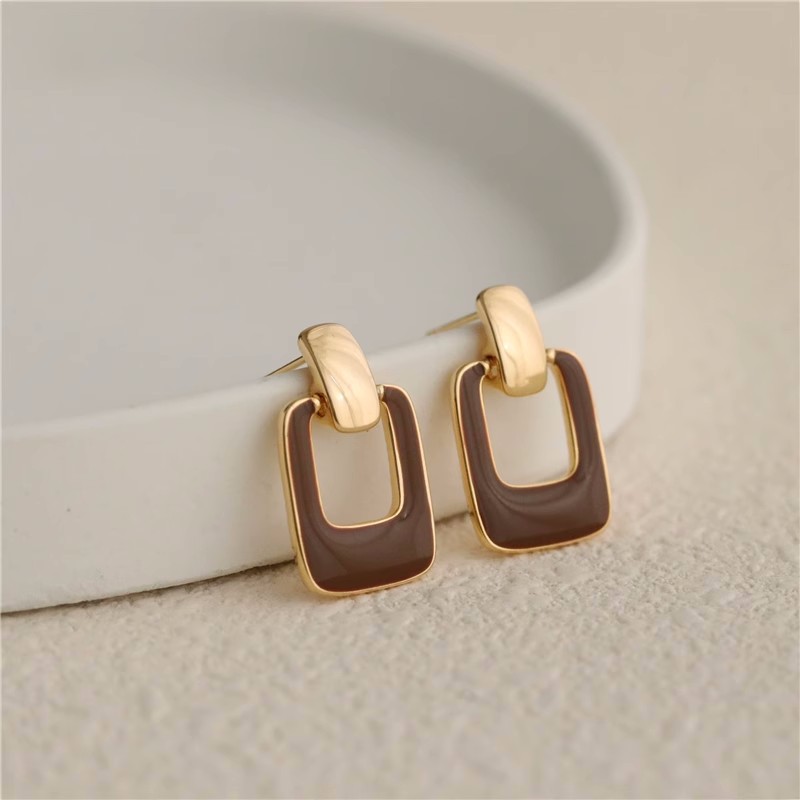 S925銀針滴釉薬小衆デザイン感イヤリング女性気質シンプルで高級感があります。