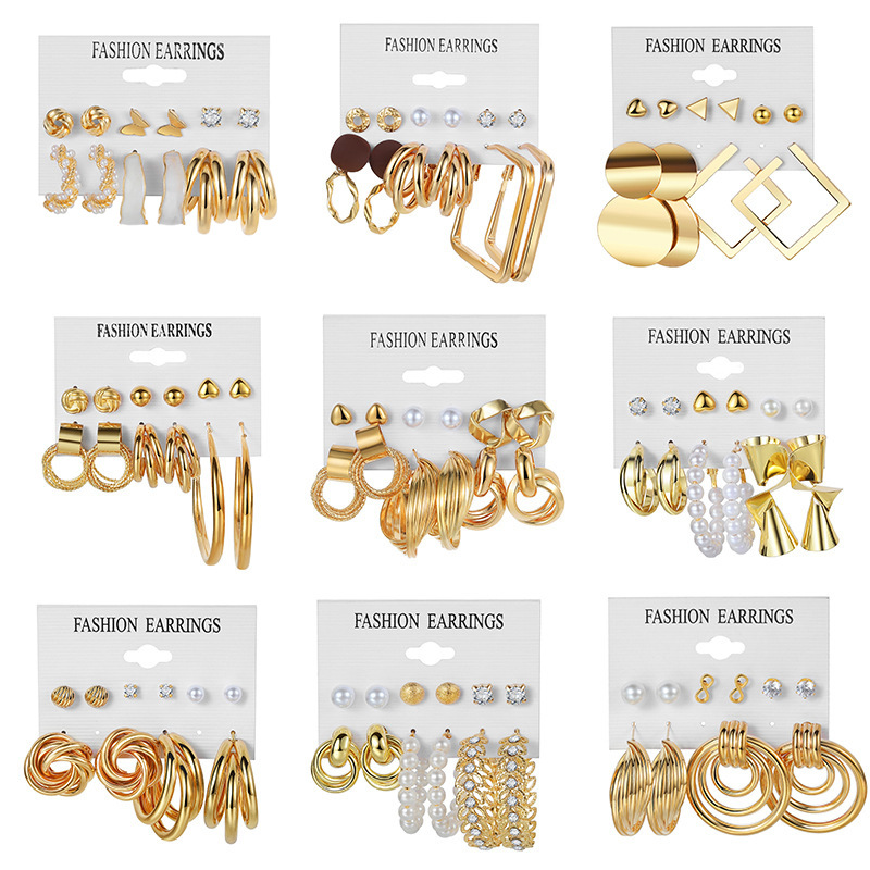 欧米の国境を越えた合金耳輪の四角い幾何学的なイヤリングセット6点セット