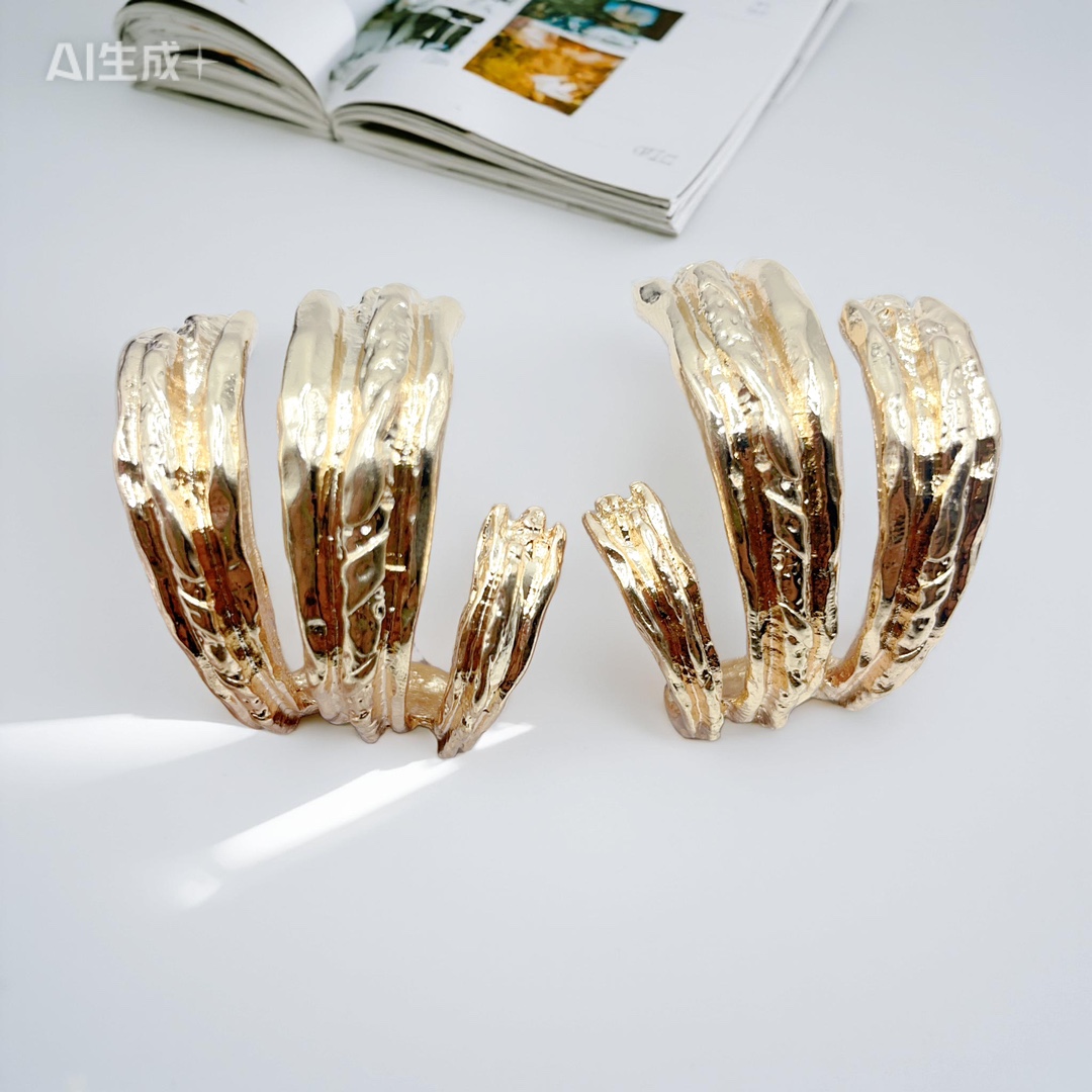 欧米風クロスボーダーイヤリング、誇張されたスタイルの合金プリーツイヤリング、不規則な幾何学模様のC型ストライプ、ニッチなフィンガーイヤリング
