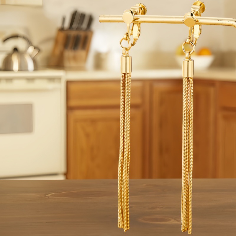 チタン鋼イヤリング、男性用イヤークリップ、穴なし、ピアス不要、女性用、トレンディ、ヒップホップ、タッセルチェーン、ロングイヤリング、パーソナライズされたデザイン