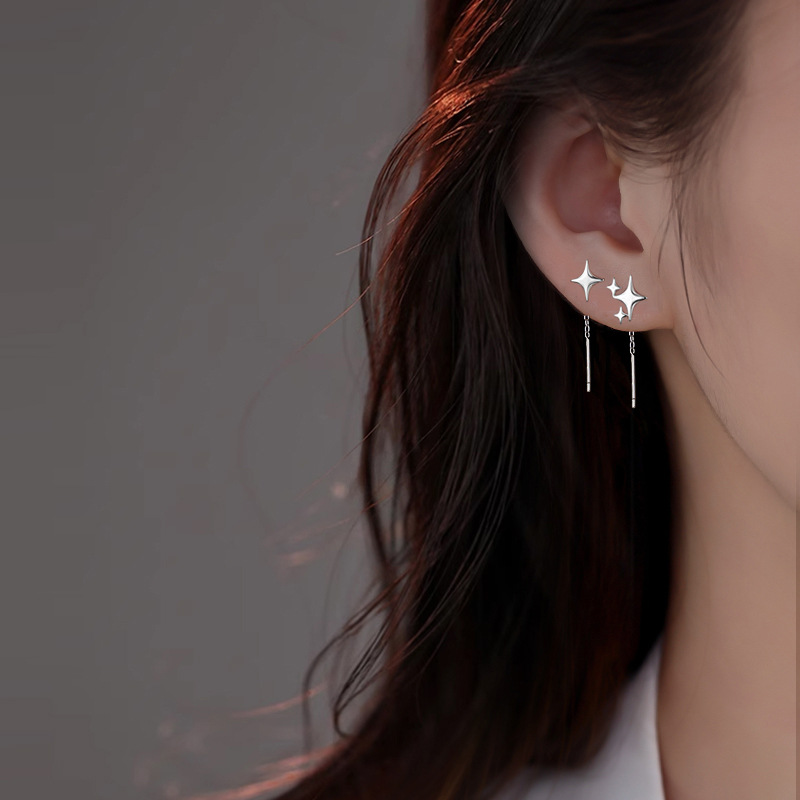 非対称四芒星耳糸女性ファッション優雅気質四角星イヤリング小衆ins冷淡風耳鎖