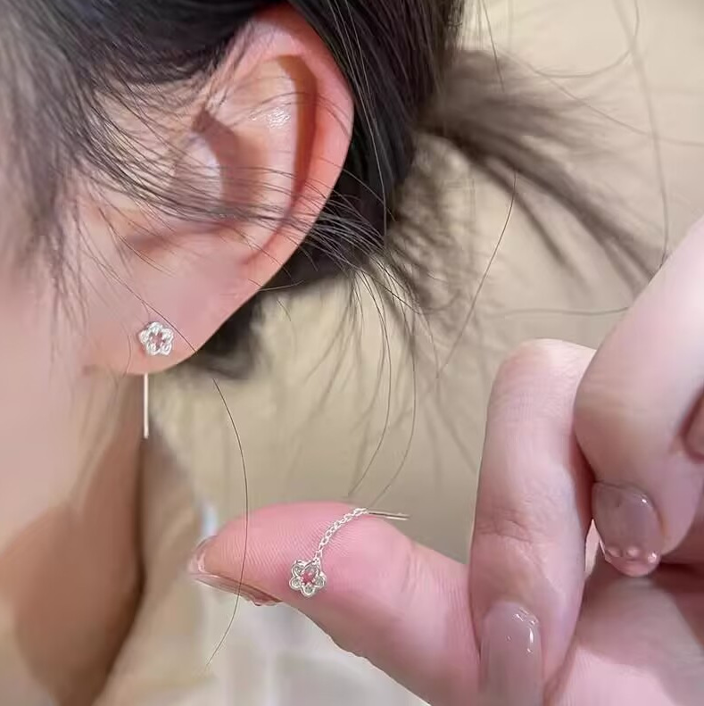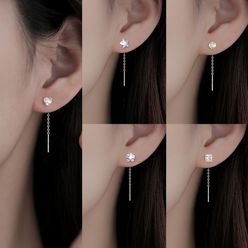 S925銀針愛耳糸韓国版小清新耳釘2021新作イヤリング潮少女耳飾り