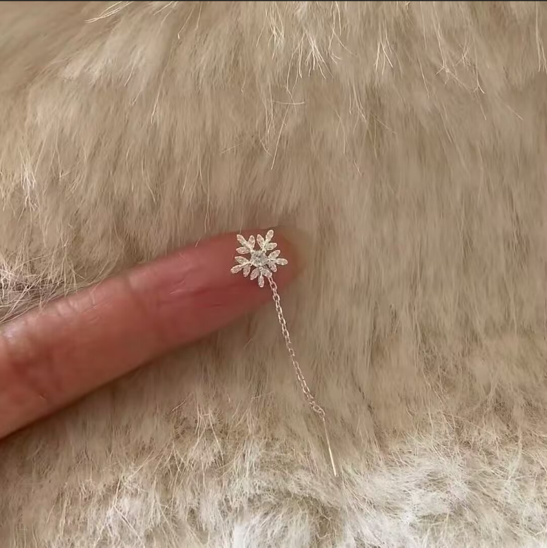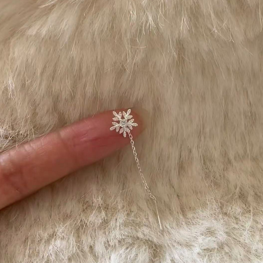 「初雪が舞い落ちる」S925銀雪花流蘇耳糸秋冬シンプル百合顔小養耳穴耳飾り