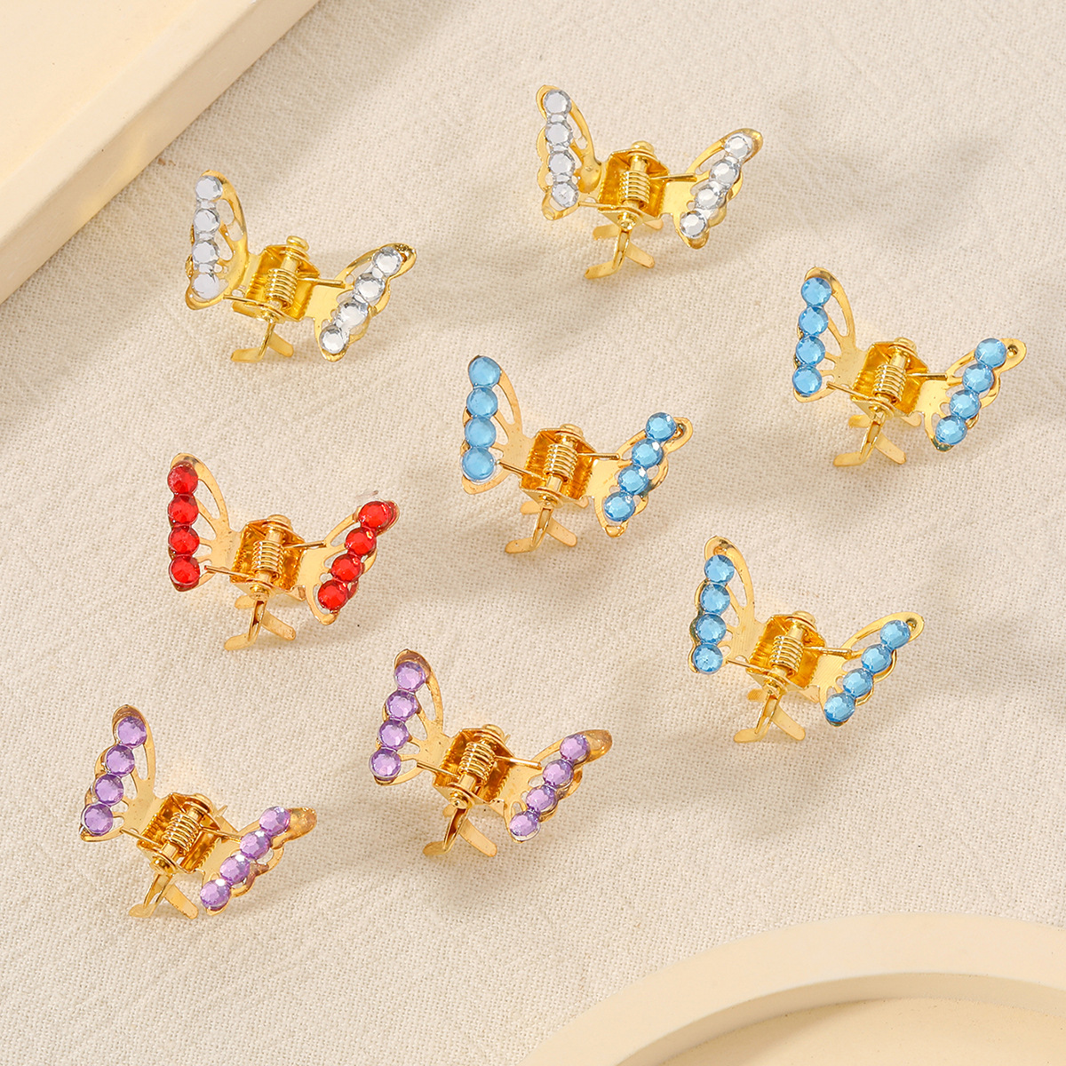 レトロな小さな金属製の蝶、ダイヤモンド付きヘアクリップ、前髪サイドクリップ、ヘアクリップ、ファッショナブルなミニヘアピンヘアアクセサリー