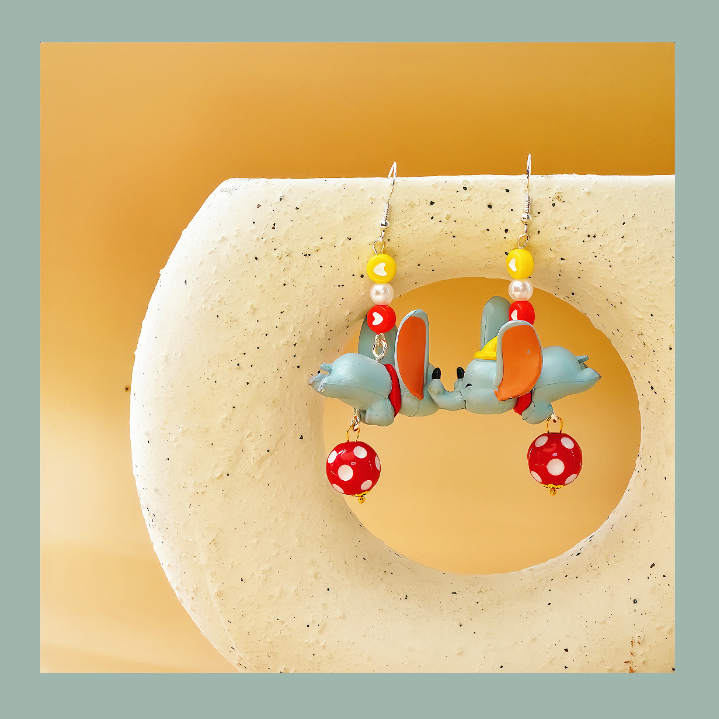 漫画かわいい趣味カラーポイントビーズ愛小飛象イヤリング個性誇張ファッションピアス女性